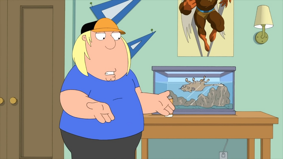 - حضور در سریال The Cleveland Show: در قسمت “Our Gang” یک شوخی کوتاه با حضور کریس داریم که از سقف خانهی کلیولند پایین میافتد.